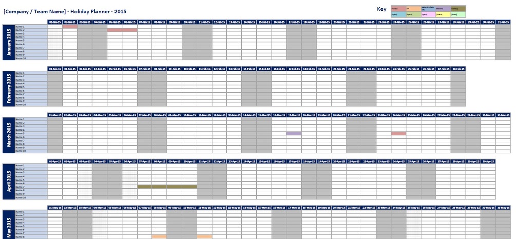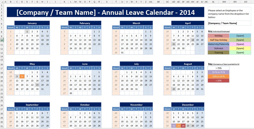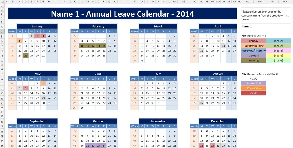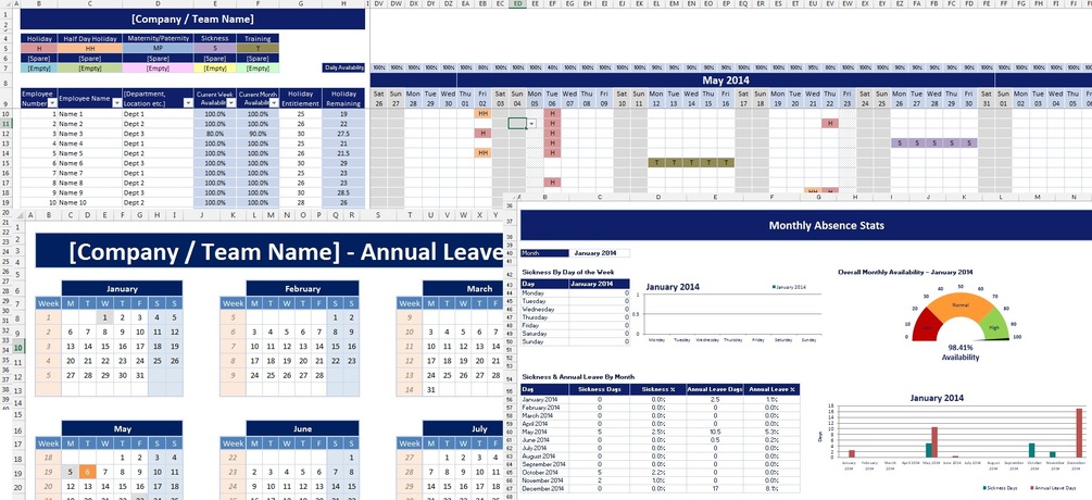 Excel Spreadsheet Employee, Staff Holiday & Sickness Planner, Calendar reusable